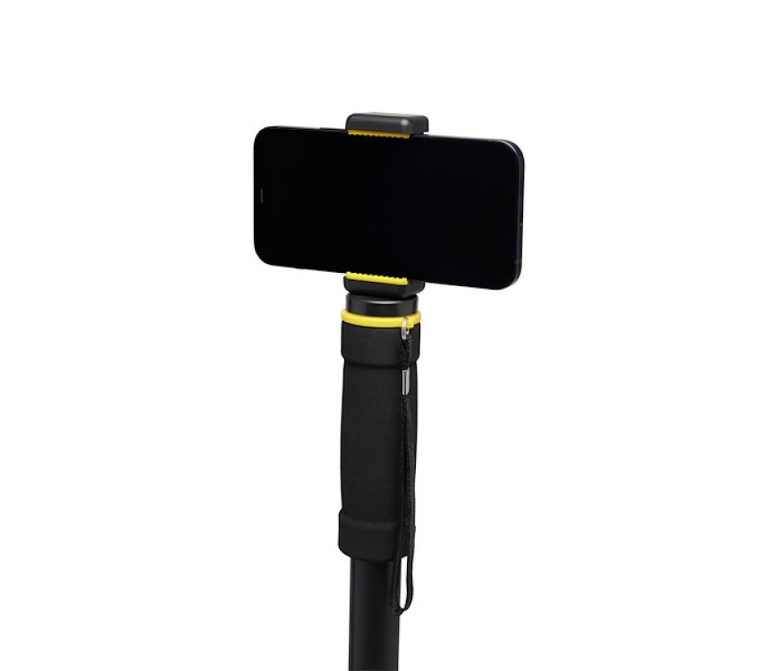 Monopod National Geographic Photo ima priložena tudi objemko za pametni telefon in torbico.