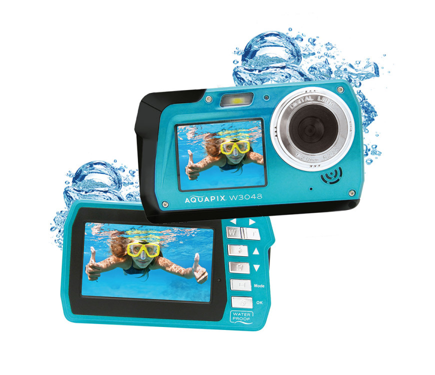 Dvojni zaslon za popolne selfije – tudi pod gladino! Aquapix W3048 EDGE je vrhunski podvodni digitalni fotoaparat, ki združuje stil, zmogljivost in praktičnost. S sprednjim 2,0" zaslonom za selfije in velikim 3,0" glavnim zaslonom boste ujeli vsak trenutek – brez ugibanja, kdo je v kadru.