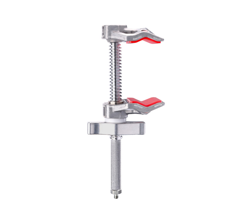 Mikro končna čeljustna objemka z zmogljivostjo odpiranja 2 palca/5 cm in največjo nosilnostjo 25 kg . Vsebuje fiksno čeljust na koncu navojne palice, idealno za pozicioniranje v tesnih prostorih ter 1/4'' notranji navoj in 1/4'' na 1/4'' moški adapter za lahke aplikacije z oprijemom . Zaradi narebričene gredi je idealen za montažo v glavo prijemala C-stojala za prijemanje predmetov, kot so krmilniki luči ali rekviziti.