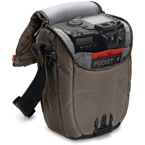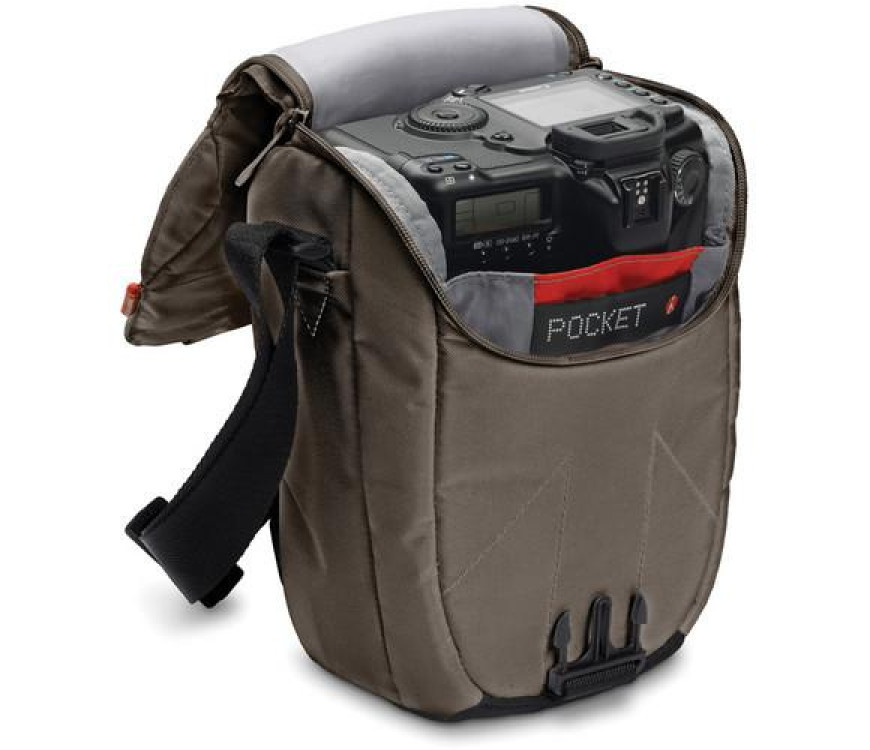 Manfrotto Solo VI holster je iz vodo-odbojnega najlona, lahek in trpežen. Manfrotto torbica za fotoaparat je primerna za DSLR fotoaparat s pritrjenim zoom objektivom (100-400 mm).