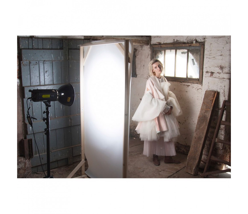 Translum svetlobna plošča 1,52 x 5,4 m (3/4 zaslonke). Translum je vsestranski, polprosojni polipropilenski material, zasnovan za razprševanje svetlobe in ustvarjanje osupljivih vizualnih učinkov v studiu ali na lokaciji.