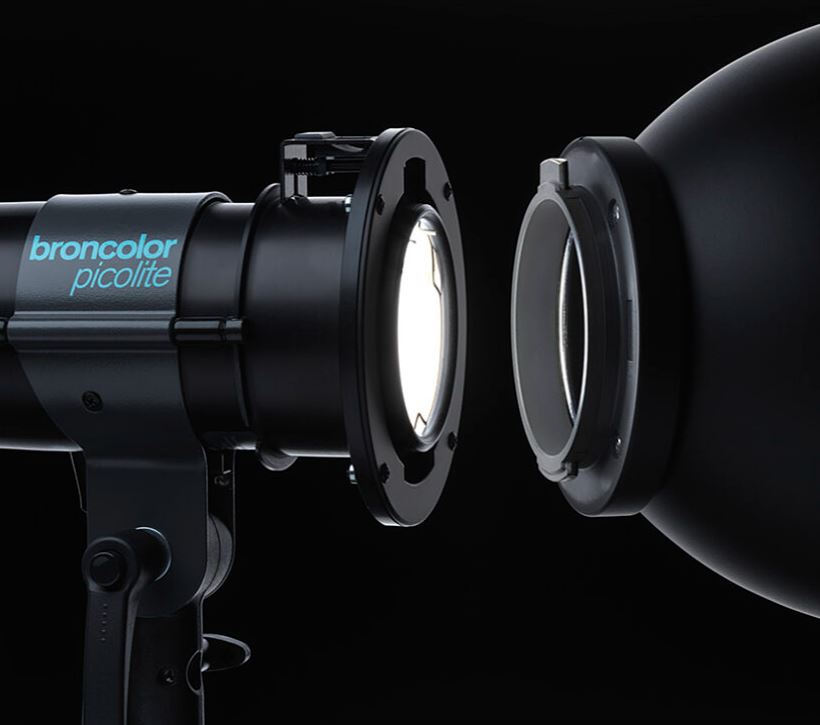 Bajonetni adapter vam celo omogoča uporabo večine standardnih oblikovalcev svetlobe broncolor z vašim Picolite.