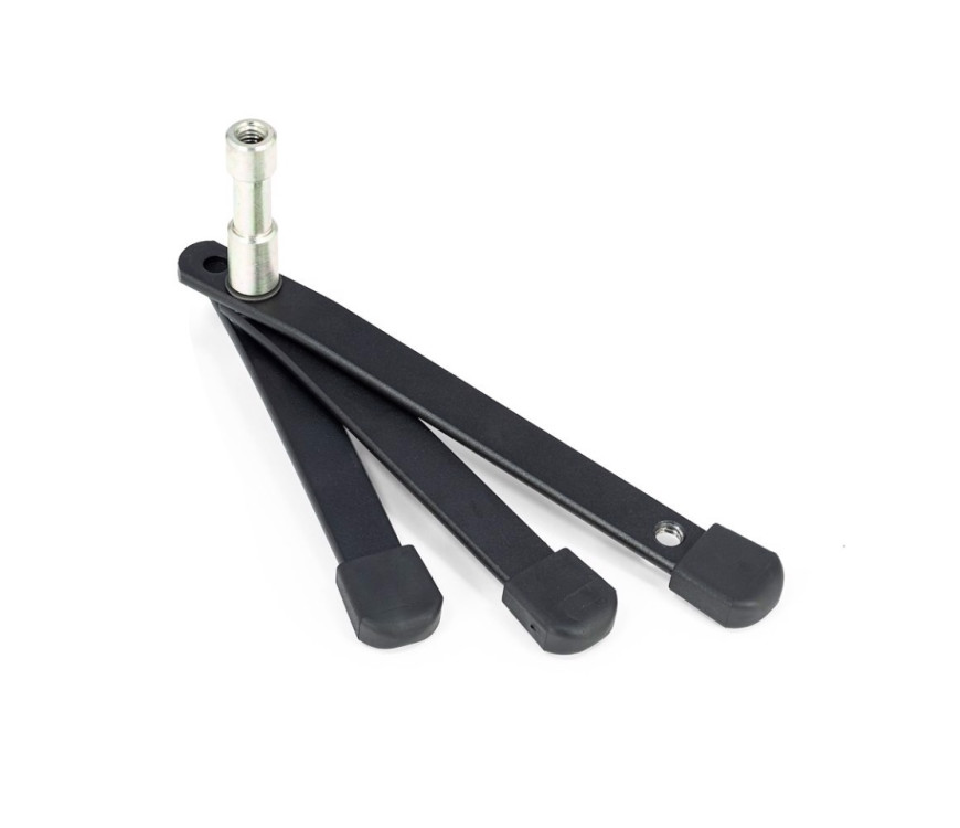 Manfrotto 003M Backlite mini stojalo brez vodila. Luknja na koncu vsake noge omogoča uporabniku da ga lahko pritrdi na tla, steno ali strop.