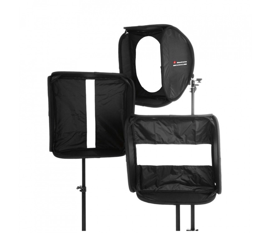 Manfrotto ustvarjalne difuzorje 54 cm priključite na Ezybox Hotshoe. Komplet vključuje 3 pokrove z različnim izrezom maske in difuzijsko ploščo 2 STOP.