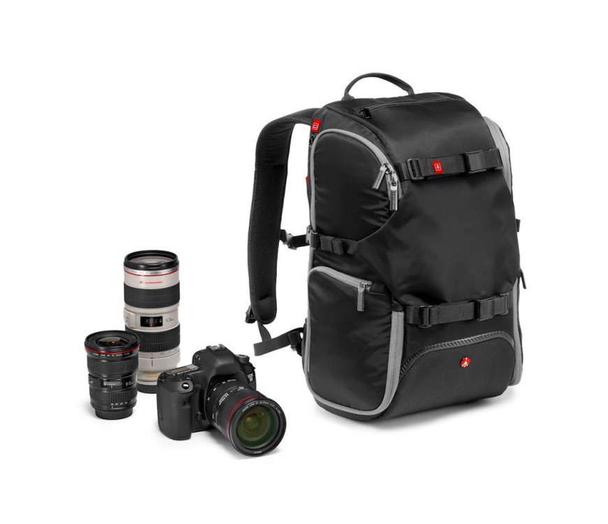 Zgornji del nahrbtnika za fotoaparat je namenjen osebnim predmetom, medtem ko spodnji omogoča hiter dostop do fotografske opreme. Manfrotto MB MA-BP-TRV foto nahrbtnik sprejme fotoaparat s pritrjenim objektivom, 1-2 objektiva, bliskavico in dodatke. Na hrbtni strani je žep za 13“ prenosni računalnik. Zgornji del nahrbtnika je mogoče razpakirati in odstraniti delilnike, da se pretvori v običajen nahrbtnik, ki ga lahko uporabljate vsak dan.
