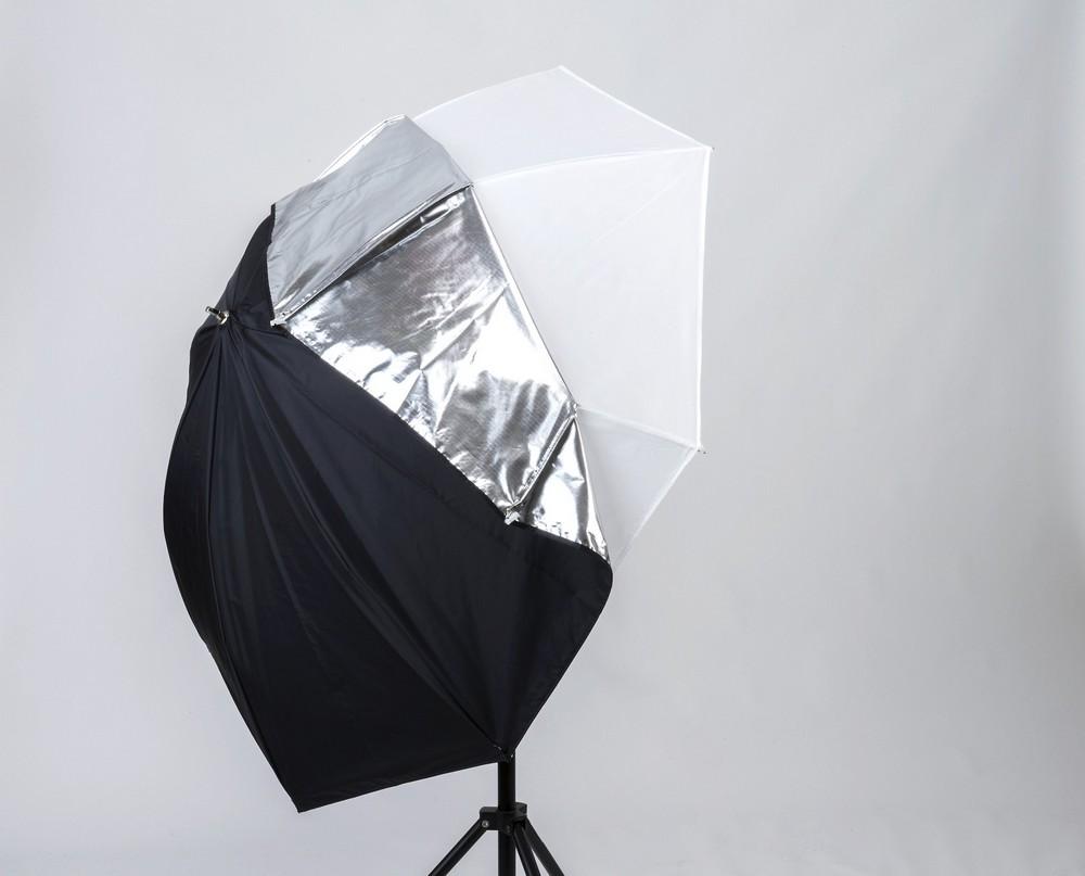 Manfrotto dežnik all in one lahko uporabljamo kot srebrni ali beli bounce, srebrni in bel bounce ali shoot through.