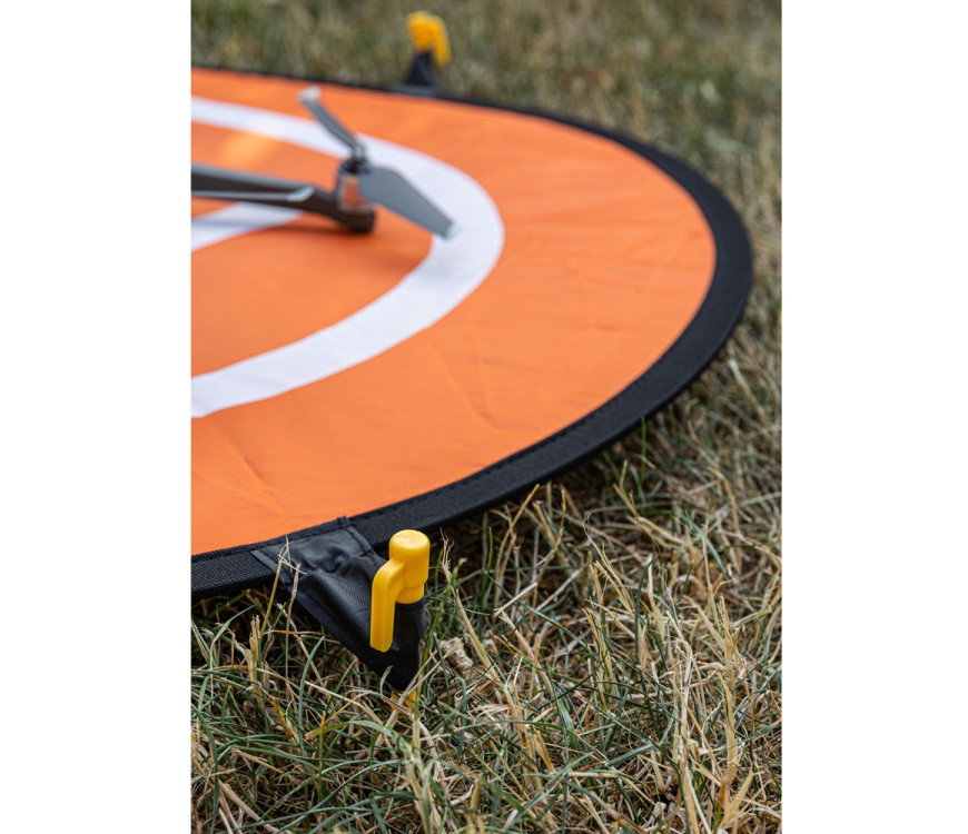 BIG DP-75 pristajalna ploščad za drone Uni ponuja čisto pristajalno točko za vaš dron. Poleg tega nobena trava ne moti vzleta ali pristanka in se lahko ovije okoli dragega električnega motorja drona. To pomeni, da je vaša dragocena oprema zaščitena tudi pred prahom, peskom in vlago. Vodoodbojno pristajalno podlogo z vpenjalnim okvirjem lahko po uporabi podloge preprosto obrišete. Ima dve različni barvni strani - eno oranžno in eno modro. Tako lahko izberete po svojem okusu ali kaj bolje izstopa iz površine, na kateri želite začeti. Površina 75 cm ponuja dovolj prostora za številne drone na trgu. Zahvaljujoč posebni tehnologiji zlaganja je paket v priloženi transportni torbi zelo majhen. Praktične plastične zatiče držijo BIG DP-75 trdno pritrjen na tla. Premer: 75 cm, teža: 190 g. Obseg dobave: podvozje, klini, transportna torba, 5 samolepilnih oranžnih odsevnih trakov (če so trakovi uporabljeni, podvozja ni več mogoče zložiti, saj bi se trakovi razrahljali).