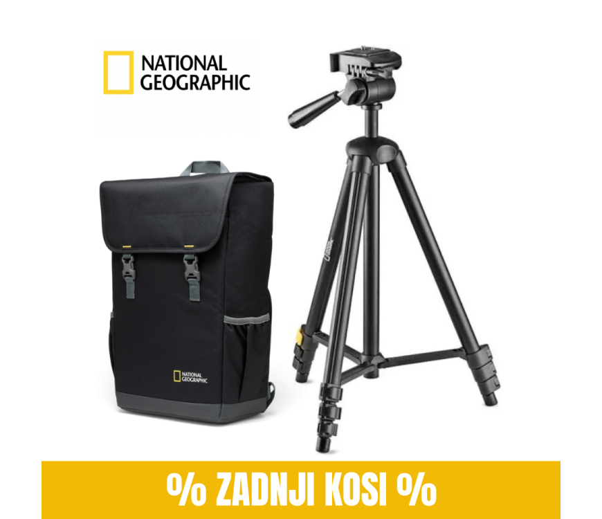 National Geographic "MEDIUM" komplet s 3-Way glavo in foto nahrbtnikom NG-E2 je popolna izbira za stabilne posnetke in varno prenašanje vaše opreme.