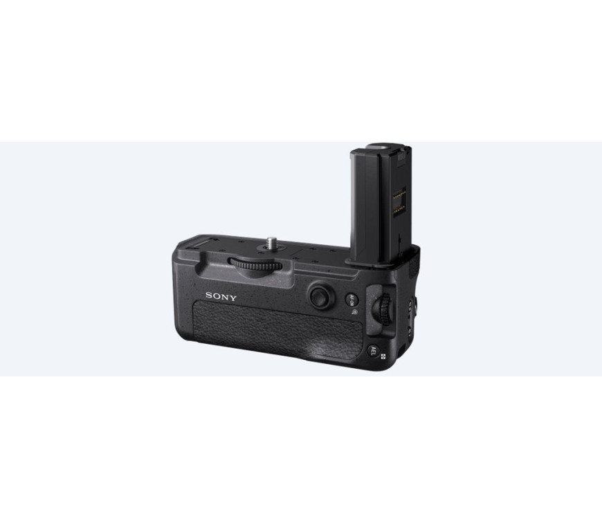 Enakovredna učinkovitost navpičnega in vodoravnega položaja - Zaradi zasnove ohišja izdelka VG-C3EM je nadzor fotoaparata skoraj prav tako preprost v navpičnem kot tudi v vodoravnem položaju. To omogočajo tipke in upravljalniki, ki so zelo podobni tistim na zadnjem delu ohišja fotoaparata. Na navpičnem držalu je na primer na voljo večnamenski izbirnik, s katerim lahko hitro izberete točko samodejnega ostrenja. Ohišje izdelka v obliki držala ALFA9 za trden oprijem - VG-C3EM odlikuje ohišje, podobno držalu, kot pri izdelku ?9, kar zagotavlja izboljšan oprijem za zanesljivo navpičen položaj fotografiranja, ki je v bistvu enako vodoravnemu položaju fotografiranja. Obvestilo - Namestitev te enote hkrati z adapterjem z nastavkom LA-EA2 / EA4 ni podprta. Če sta hkrati nameščeni obe enoti, je zaradi ozke reže med enoto in adapterjem z nastavkom za objektive otežen oprijem držala.