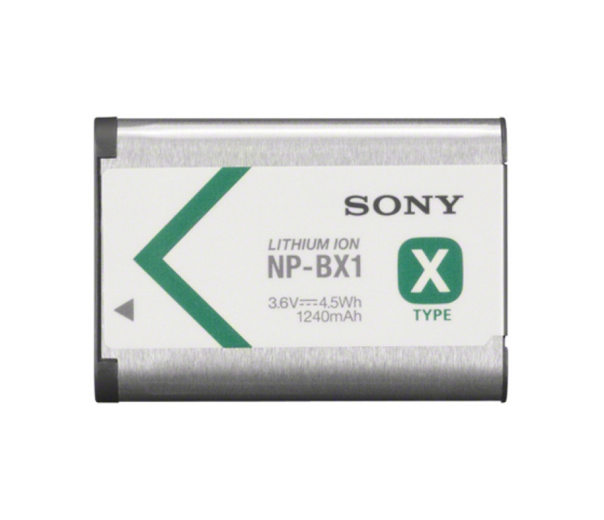 Litij-ionska akumulatorska baterija vrste X Funkcija InfoLITHIUM natančno prikazuje preostalo zmogljivost baterije (z združljivim fotoaparatom Cyber-shot™) Približna zmogljivost: 3,6 V / 4,5 Wh (1240 mAh) Približne dimenzije (mm): 32 (Š) x 9,2 (V) x 92 (D) Približna teža: 31 g