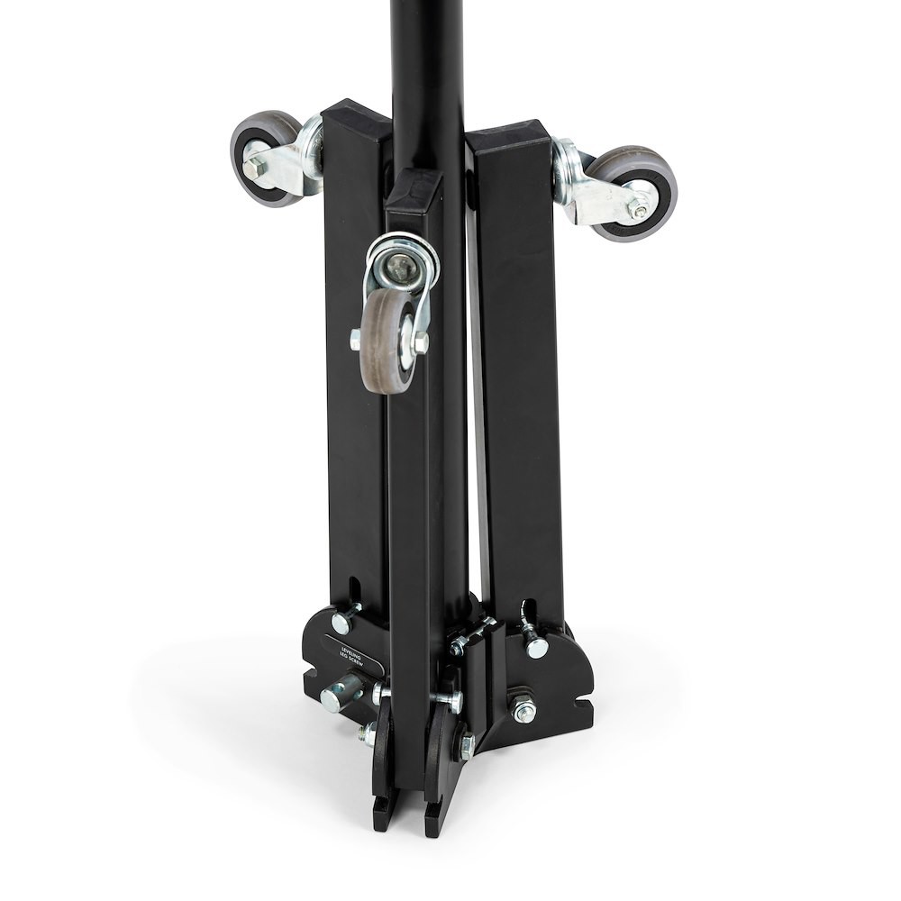 Manfrotto 299B črno baby studijsko stojalo narejeno iz jeklene osnove ima 3 sekcije - 2 dvižni iz eloksiranega aluminija ter 1 izravnalno nogo za uravnavanje stabilnosti na neravnem terenu. Stojalo ima koleščka. Njegova nosilnost je 12 kg.
